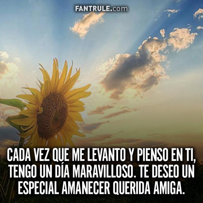 Primeramente tenemos un hermoso girasol bajo un lindo amanecer. En esta imagen se puede leer un bello mensaje matutino, seguido de un tierno deseo para que dediques a tu mejor amiga.